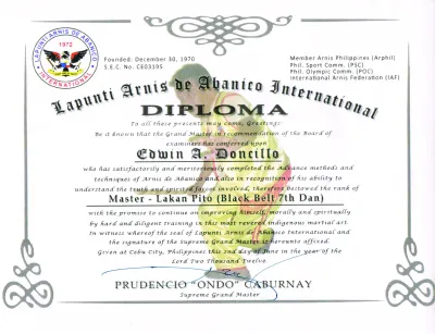 Photos from 2012 meeting and seminar with SGM Undo Caburnay and GM Jun Igpit. Lapunti Karilyon hosted SGM and GM Jun to discuss matters concerning the formal organization of the group. SGM and GM Jun also reviewed Lapunti Karilyon's curriculum and conducted a seminar for it's members. The event also marked the recognition and promotion of Lapunti Karilyon's senior instructors, Buboy Ador and Nonoy Doncillo, to the rank of Masters in Lapunti.